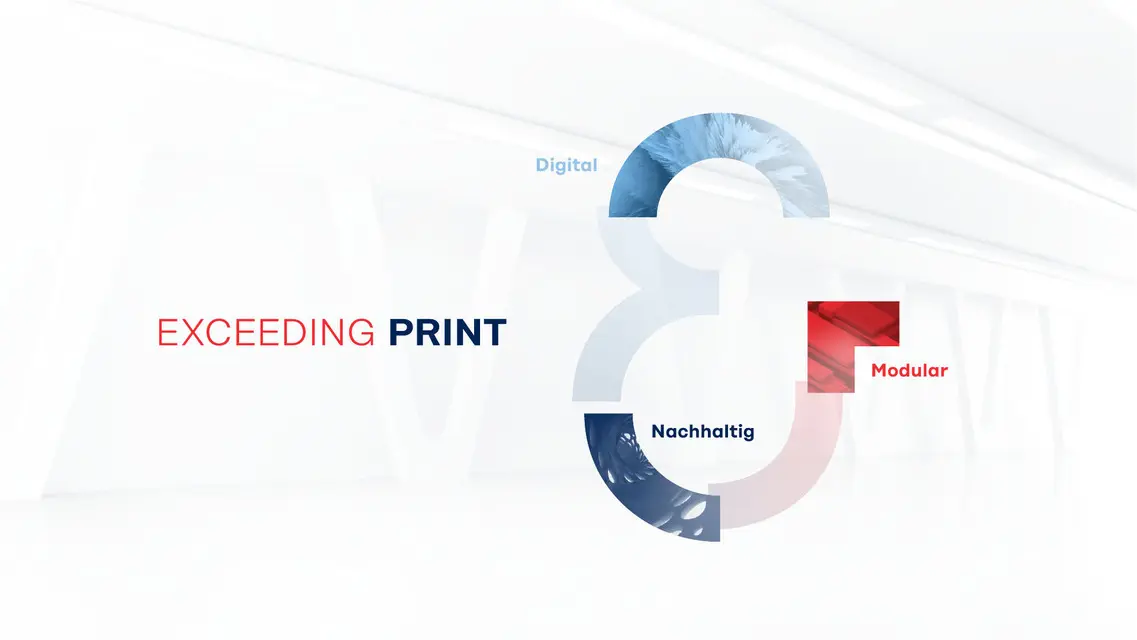 Die Summe der verschiedenen Herausforderungen sowie die sich daraus ergebenden Wechselwirkungen in der Druckproduktion wie in der Unternehmensausrichtung erfordern eine umfassende Strategie mit konsequenten Maßnahmen, die über den reinen Druckprozess und die reine Druckmaschine hinausgehen. Deswegen baut „Exceeding Print“ neben nachhaltig produzierten und produzierenden Maschinen auf eine Effizienzsteigerung durch digitale Prozesse und die Erweiterung der Modularität in der Produktpalette.