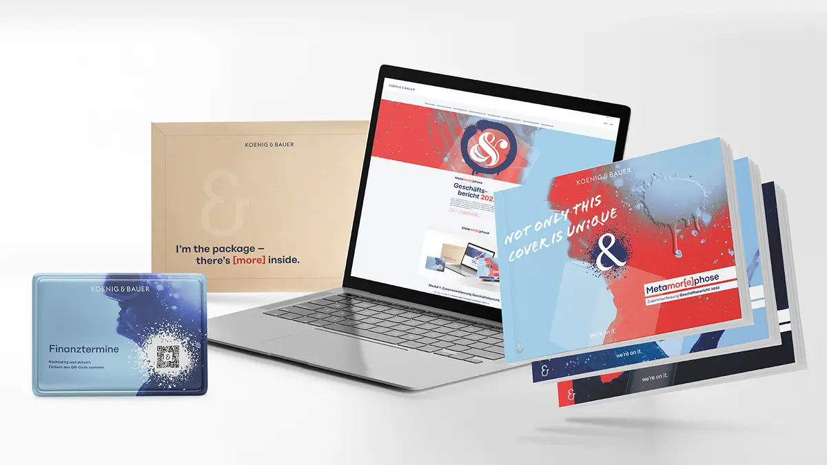 - Mit dem Titelthema des Geschäftsberichts Metamor[e]phose stellt Koenig & Bauer die eigene Fähigkeit zur Weiterentwicklung und Anpassungsfähigkeit in den Fokus