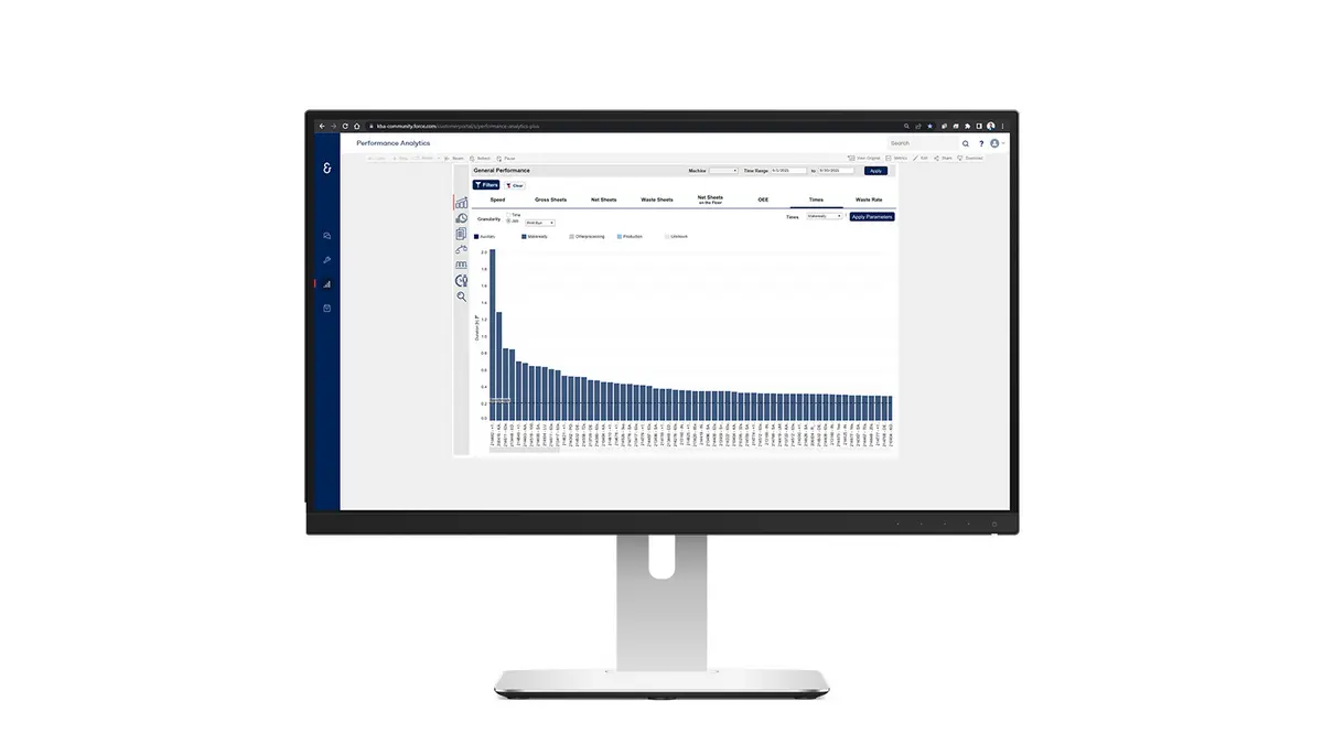 Performance Analytics unterstützt Koenig & Bauer-Anwender dabei, die gesammelten Maschinen- und Betriebsdaten umfangreich zu analysieren und übersichtlich aufzubereiten. So lassen sich verborgene Muster und Informationen aufdecken, präventive Entscheidungen treffen, Prozesse optimieren und Produkte noch besser auf die Kundenbedürfnisse abstimmen.
