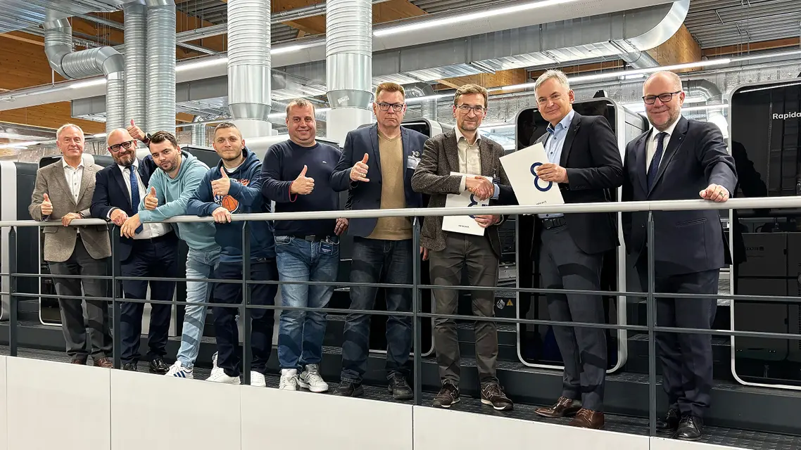 Die Druckerei Pozkal, einer der ältesten privaten polnischen Buchproduzenten, hat eine Hochleistungs-Bogenoffsetmaschine Rapida 106 in Betrieb genommen. Die Achtfarbenmaschine mit Bogenwendung für die 4 über 4-Produktion markiert einen entscheidenden Schritt im Prozess, das Unternehmen in Inowrocław (Woiwodschaft Kujawien-Pommern) nach einem schweren Brand im Mai 2025 wieder aufzubauen. Die Montage der technologisch fortschrittlichen Maschine erfolgte im Februar 2026, die offizielle Inbetriebnahme einen Monat später.