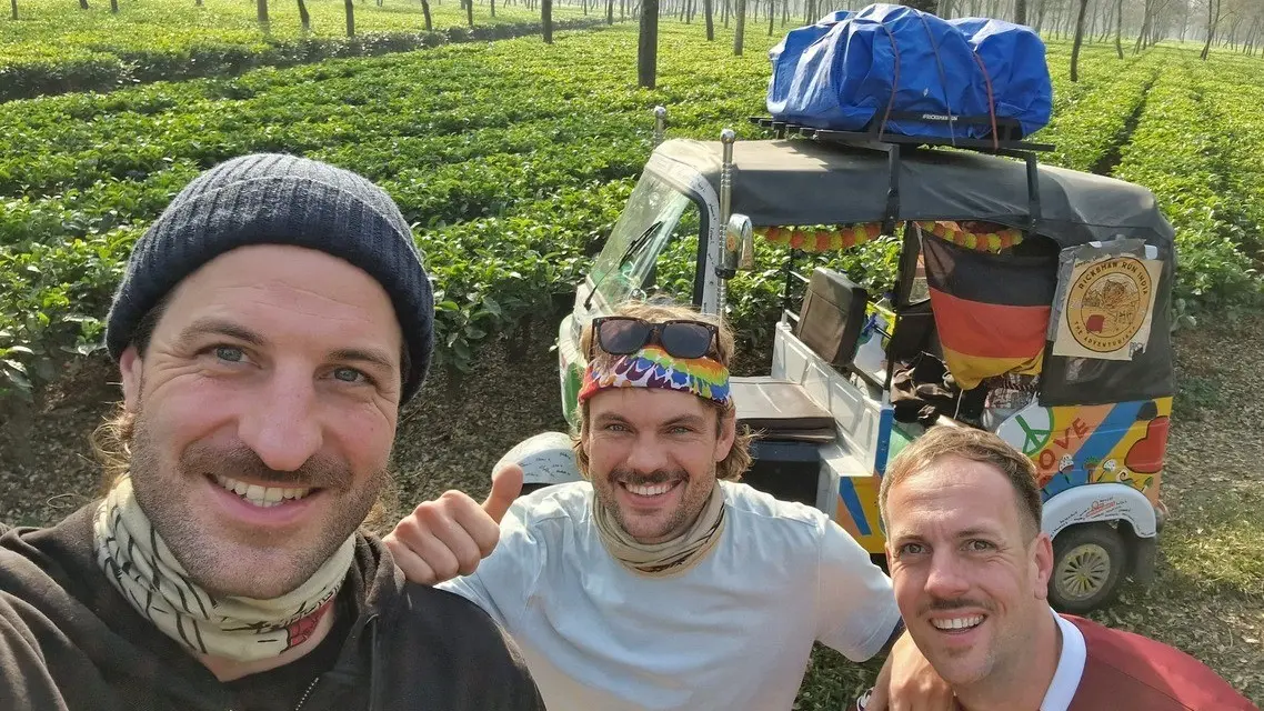 The adventure began for Florian, Adrian and Marcel on 29 December 2023. In Kochi, the starting point for the trip, they met up with the other teams and took a seat in their rickshaw for the first time. They also learned a few technical tricks as an introduction to the vehicle which was to be their companion for the next 15 days – so as to be prepared when (and not simply in case) they found themselves stranded at the roadside.
