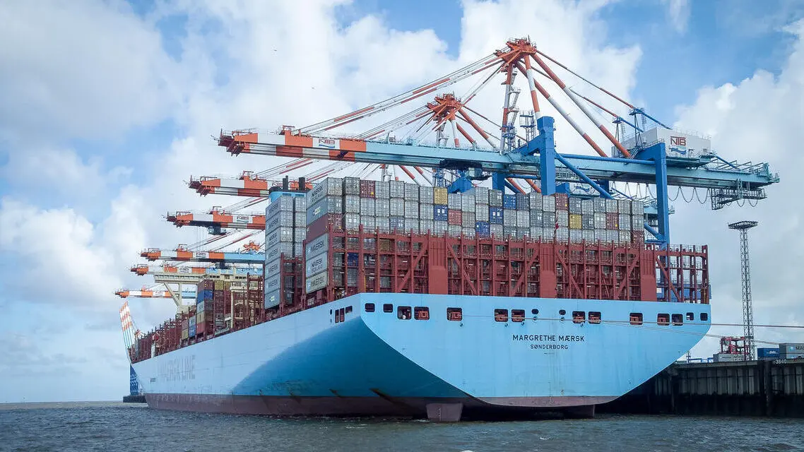 The history of the harbours in Bremerhaven stretches back almost 200 years. From 1968, today’s container terminal finally took shape with a continuous length of 4,930 metres, 14 berths and 3,000,000 m² of floor area. This is where “our” Rapida 105 was loaded onto the Magleby Maersk, one of the largest container giants on the seas. The Magleby Maersk is 399 metres long, 59 metres wide and has a draught of 15.5 m. It can take up to 18,270 containers and, with a machine output of 80,700 PS, can reach speeds of up to 25 knots (46 km/h) between Europe and Asia.
