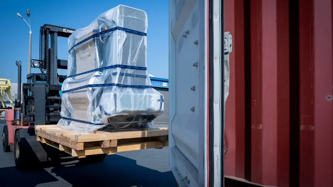 It was a pretty unusual scene for many people: in June 2021, the China Print trade show in Beijing was one of the first in-person trade fairs for printing machine engineering to open its doors again. The showpiece on Koenig & Bauer’s stand, measuring more than 1,000 m², was the new generation of Rapida 105 – the world première in the current corporate design and with a whole host of additional automated features. But before the machine could make its appearance, it had to embark on a long journey.